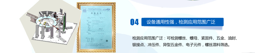 主營(yíng)產(chǎn)品:光學(xué)影像篩選機(jī),螺絲全檢設(shè)備,螺母全檢設(shè)備,自動(dòng)在線(xiàn)檢測(cè)設(shè)備